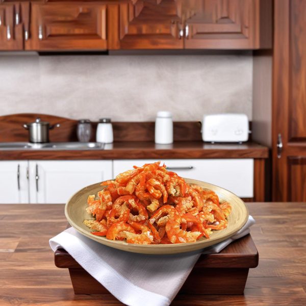 Tôm khô đất Cà Mau sau khi hấp chín, phơi khô theo cách thủ công hoàn toàn, màu sắc và hương vị tự nhiên vốn có.